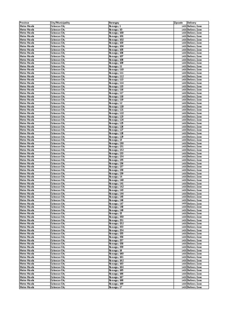 Ph Postal Code Rules Delivery Zone 27 10 2017 Pdf Makati Metro Manila